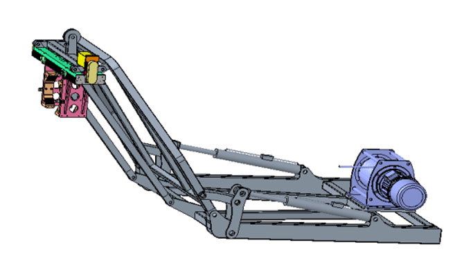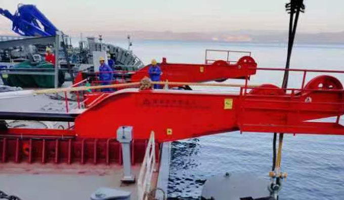 船艉吊装置是船上实现圆柱状物体从船艉处水域打捞至甲板过程中的过渡吊运设备,整机配置电动(或电液)伺服系统,臂架结构件材料选用高强钢合金结构钢,结构强度高,承载性能优异。滑移行程2m,额定起吊重量可达100t。