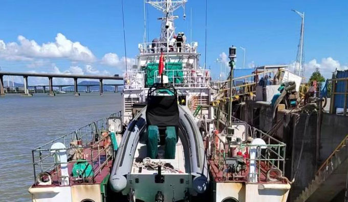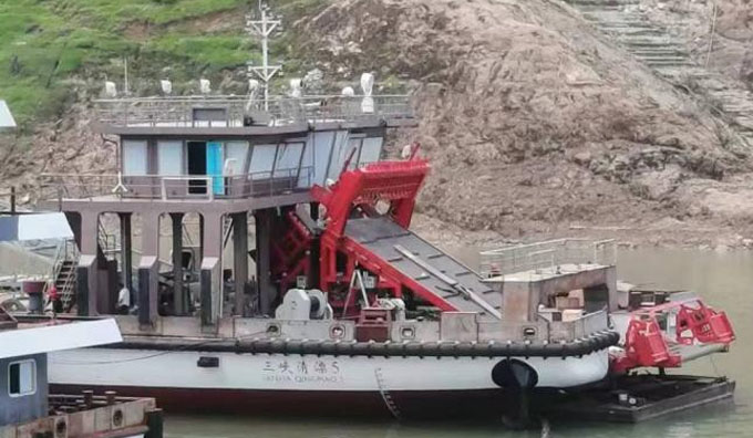 水上清漂装置安装在清漂船上,针对水上漂浮物具备水上打捞、输送、切割、振动分料等功能,单日最大清漂能力可达2000m3。