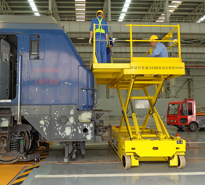 公司技术团队不断拓展业务领域,联合战略合作伙伴,针对车辆或机车等的日常检修保养共同开发了多种工艺装备,如升降平台、工艺转向架、作业平台、翻转设备、移动式升降机等装备。可有效提升检修保养的便利性。