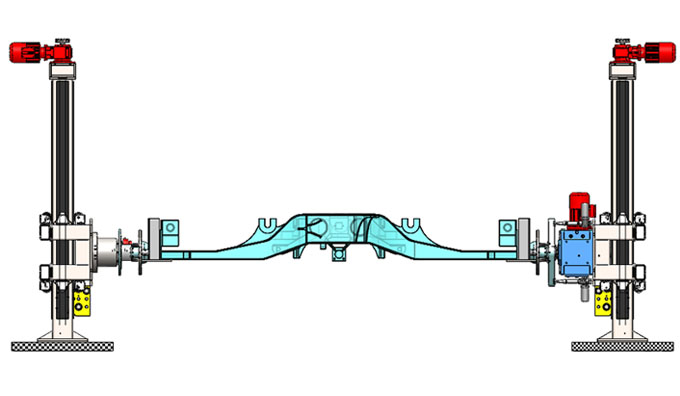 适用于有车辆底部检修需求的工位,多台升降机托头深入车辆底部托举点之后,可以同步动作,将车辆或其它待检测的部件升起到一定高度,多台同时升降的同步精度不大于4mm。