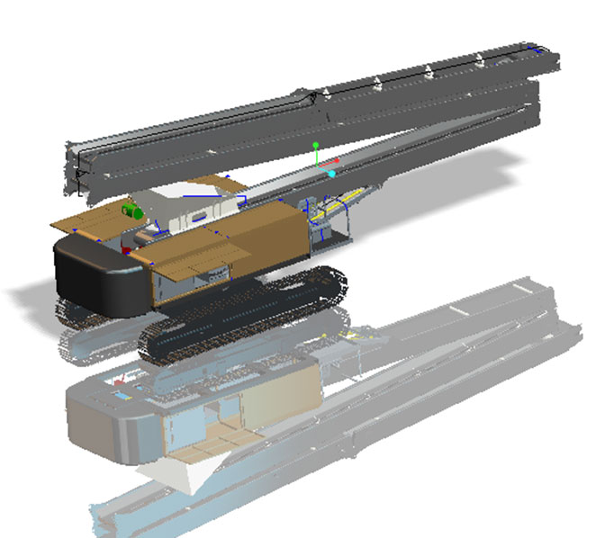公司技术团队不断拓展业务领域,联合战略合作伙伴设计开发了多款散料输送设备,集成了机械、电气、液压、气动控制等功能模块。主要开发了履带移动式输送皮带机、叠式移动输送皮带机、伸缩式回转输送皮带机等输送设备。